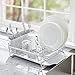 HIGH QUALITY: Heavy-duty, satin-coated, rust-resistant wires secure items and soft feet keeps dishing rack from scratching countertops