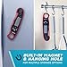 Integrated magnet for convenient storage on refrigerators or ovens.