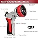 HEAVY-DUTY GARDEN HOSE NOZZLE: Body and trigger are constructed with 100% powder-coated metal material, which is robust to resist rust, corrosion and wear. The shock resistant rubberized bezel dial can also prevent it from accidental drops and damage. It is much stronger, more durable and long-lasting than plastic water nozzles.