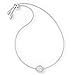 Vividly sparkling: The entirety of the delicate rhodium plated chain is adorned with circular clear crystals and finished with adjustable bolo closure