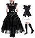 🖤☑Package Includes: 1x Wednesday Black Dress,1x Belt,2x Gloves,2x Socks