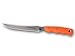 Blaze orange handle is stain resistant with an easy-grip black rubber inlay, liner-lock construction and a pocket clip