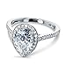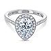 Center stone is a 10x7mm Pear Cut Genuine Moissanite