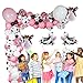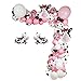 Package includes: 15pcs12inch cow pattern balloons; 15 pcs 10inch white balloons,35pcs 10inch pink balloons; 1 pcs 18inch white balloons,1pcs 18inch pink balloons; 10 pcs 5inch white balloons,10pcs 5inch pink balloons; 10pcs 5inch black balloons,2pcs16inch foil cow head balloons; 2pcs 16inch walking cow helium balloon,5 pcs sequined balloons,1 roll of 16ft arch balloon strip tape, 1 roll of 100 dot glue.