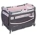 Functions as a bassinet with the multi-textured mattress pad; Large caster wheels with brakes let you move the playard around the house with ease