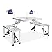 [Stable & Durable]: MDF table top can hold up to 50 lbs, each seat can hold up to 165 lbs. MDF table top is easy to wipe and clean. Aluminum material is fireproof, waterproof, Anti-rust, Scratch resistant, heat resistance