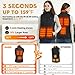 HEATS UP FAST & ALL-AROUND HEATING: 3 seconds up to 159 ℉/70°C with PD 22.5W battery. Built in the overheating protection, keeping you warm and safe at the same time. The 30% larger area of heating wire and the 6 carbon fiber heating elements generate gentle uniform heat across core body areas (left & right pocket, collar, upper back, waist ), keep your whole body and hands wrapped in warmth!