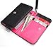Easy device access^Snap closure for added security^Wrist strap for carrying the wallet clutch on wrist^Soft leatherette lining for protection against scratching^ID window for quick checks