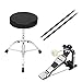 🥁 FLEXIBLE ADJUSTMENT: The stool has 5 height adjustable and each stand is adjustable, suitable for people of various heights. The snare drum stand can be adjusted according to the size of the snare drum. And all tilters lock to practically any position you adjust them to