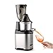 Easy To Use: Equipped with a powerful but quiet gear reduction equivalent to a 2HP motor, this juice maker generates enough torque to process tough ingredients; Juice press also features an extra-large feed tray and convenient built-in handle