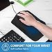 【High quality materials】Mouse pad with wrist rest is made of 100 percent memory foam without additives or fillers.The soft memory foam-filled cushion part will slowly bounce back when your hand leave it, not easy to out of shape.And the cover is made of soft and smooth fabric, no irritation to skin, is able to track the mouse movements fast and accurate. The fabric stays with the PU material base tightly, hard to curl up on the edges even after long time usage.