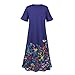 This dress blooms with style - This charming t-shirt dress simplest of gowns, elevated by a rich royal blue color that is scattered with a vivid wildflower garden print near the bottom.