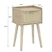 Sturdy & Stable: The Mid-Century end table is constructed with solid wood legs, Particle board body and rattan door, keep the side table sturdy and stable