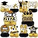🎓【Delicate Design】:LABEOL graduation party decorations 2023 supplies include - 10 pieces black gold congrats grad themed honeycomb centerpieces, the decorations with letters "Congrats GRAD""IM DONE""2023 GRAD""Class of 2023""we are SO proud of YOU ""You Did it" and graduation caps, certificates, stars, balloons, books elements. Black and gold is more in line with the atmosphere of graduation. Hope you will have a memorable graduation party.