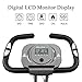 DIGITAL MONITOR: LCD monitor displays time, speed, distance, calories, and scan. Seat dimensions: 11L x 9.5W x 2.5H inch.