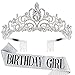 👸👑[Package Included] Crown tiara x1, birthday girls sashx1, brooch clip pinx1, happy birthday banner x1,total 4 pieces to meet your party needs,So much VALUE!
