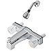 Two handle non-metallic (plastic) tub shower valve with shower head/arm/flange