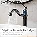 【Oil Rubbed Bronze Finish】 Oil Rubbed Bronze is a polished black finish with a hint of bronze, giving the faucet a unique look. Unique farmhouse and vintage design to meet the requirements of DIY bathroom design. Do not use with acid and alkaline detergents for daily cleaning. Clean with clean water and cloth.
