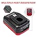 Universal 110V to 240V voltage input, wide compatibility to support 19.2V batteries DC output 2A for NI-CD batteries and 2.0A for Li-ion batteries, charge batteries in a highly efficient way.