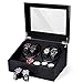⌚Elegant Leather Design: Adopt auxiliary winding steel plate and 3mm glass lid to display your watch perfectly. Black leather,Soft interior has been applied to protect your watch and avoid scratches,Adjustable pillow in the middle fits different-sized watches.