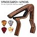 INNOVATION FUNCTION-The guitar capo for quick change position smooth with one hand, there’s an artificial clip on the top for convenient carrying of the guitar pick and never shake off. You can taking the guitar picks with the capo instead of your mouth when you need a break on the show.