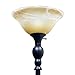 Restoration bronze finish over iron construction. Amber marbleized glass shade.