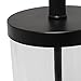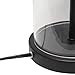 Fabric white shade. Black metal on top and bottom of clear cylindrical glass base. Style: Contemporary. Finish/Color: Black/ White. Primary Material: Glass.