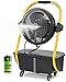 PORTABLE MISTING FAN: 4 casters are designed to move the fan easily. The rear wheel can be locked, so it is easy and safe to use outdoors. Detachable and portable battery are great for your porch, deck, patios, job site outdoors, farm, picnic, BBQ and your nature adventures.
