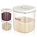 Multifunctional Food Container - The large BPA free rice bin container is perfect for storing rice, cereal, pet food, flour, pasta, corn flakes or other dry food. Two small storage jars suitable for nut, cookies, sugar, you can also put in fruits vegetables and store in the refrigerator.