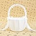Flower Girl Baskets for Weddings: Our elegant white satin-wrapped flower girl basket is decorated with bowknots and faux pearl beads with a ruffles satin handle