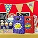 SUPERHERO TREAT BAGS - 24-Pack kids goodie bags with handles, paper birthday party supplies bags for retail, gift, party favors. 4 Assorted designs, 5.5 x 2.5 x 8.5 inches.