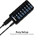 1 Smart Charging Port: This powered USB hub come with a dedicated charging port allows to charge cellphones, tablets, camera, speakers and more, automatically detects and delivers the optimal charging current