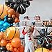 🎁PACKAGE INCLUDES: Tatol 100pcs balloons- orange balloons:12"x3pcs, 10"x20pcs, 5"x15pcs; black balloons:12"x3pcs, 10"x15pcs, 5"x15pcs; nude balloons:10"x9pcs, 5"x5pcs; silver balloons: 10"x5pcs, 5"x5pcs; foil balloons:18" basketball x3pcs; 4D Starburst Balloons: black x2pcs; 16ft (5M) arch balloon strip x1, glue stickers x100, 10M ribbons x1