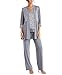 This elegant three-piece set features a sleeveless top, straight-leg trousers and an open-front style jacket.