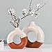 【Donut Vase】Our matte Circle Ceramic Donut vase 2 - Piece Set,They come in different shapes and sizes, Put together for display instantly becomes a stunning art decoration,Whether displayed alone or with flowers. Our Terracotta vases can play a great decorative role in your home.and guests will inevitably be attracted by its elegant appearance.