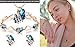 Bracelet charms each measures 0.5" x 0.5"; Lobser claw clasp; Chain length is 7" +2" extender; Galatic crystal, sapphire blue; Flatback zirconia rhinestones, crystal AB color; Rhodium plating