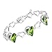 Delicate Birthstone Jewelry that Lasts - This chain bracelet is adorned with 0.53 x 0.68-inch Peridot Green birthstone crystal for August. It is silver plated and 7 inches long, with a 2-inch extender. Each link bracelet is also designed with a secure lobster claw clasp.