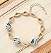 Bracelet charms each measures 0.5" x 0.5"; Lobser claw clasp; Chain length is 7" +2" extender; Galatic crystal, blue zircon; Flatback zirconia rhinestones, crystal AB color; 18K rose gold plating