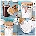 [Convenient & Attractive ] 8 piece kitchen storage canisters set in clear glass to find your kitchen goods quick and easy. The wooden lid and transparent glass offer minimalist and modern design that blends in perfectly with your kitchen corner, bathroom and laundry room.