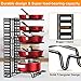 Adjustable Dividers: This pot and pan organizer comes with 8 adjustable tiers. You can install the pan organizer according to the sizes of your pots and pans (The adjustable organizer can hold up to 16 pans depending on your assembly idea, making your cookware neat and organized