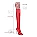 🔥SEXY HIGH HEEL OVER THE KNEE BOOTS FOR WOMEN POINTY TOE : These women’s high heel go go dancer boots feature a 4.5 inch/ 11.5 cm stiletto high heel. The upper of these stiletto heels thigh high boots for women pointed toe is made of stretch patent leather and rhinestone mesh material, super sexy and stylish. Slip on gogo boots for women adopted pull-on fit and are available in red, black and white colors.