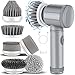 【Portable & Cordless Electric Scrubber】 Getting rid of the long cord, you can easily use this cordless shower brush for cleaning any corner of the house, there will be no more plug and cable trouble. The ergonomic premium silicone grip of this cleaning brush can be held firmly even with sweaty or wet hands, not only saving time and effect, but also protect joints and back . You will find house-cleaning will be so easy with this electric spin scrubber.