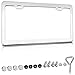 【100% Stainless Steel】:Made of high-quality stainless steel that strength is higher than aluminum, it's not easy to deform. This silver license plate frame is polished to a mirror 'chrome-like' finish, blingy and rustproof.
