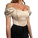 FEATURE: Off shoulder ruched sleeves, bustier, corset crop top, elastic fabric, comfortable satin silk. This outfit has the effect of narrowing the waist and girdling the chest, which can better show your figure curve.