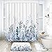 🛀[Non-slip Design]: Toilet lid cover mat, bath mat and bath rug of the blue flower shower curtain set are plum blossom point plastic bottom, soft and breathable, not easy to aging, antiskid and water absorption, exquisite edge wrapping lengthening the life of mats;
