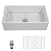【Durable Farmhouse Sink】: This farmhouse single bowl sink is made of high-quality fireclay material, fired at extremely high temperature above 2300℉ for 26 hours, very hard, and also resistant to scratches, discoloration and cracking performance.