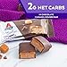 STAY ON TRACK. Our Chocolate Caramel Mousse Bars provide 3 grams of protein and 8 grams of fiber per serving to help you achieve your daily goals. And, with 2 grams of net carbs and 1 gram of sugar per serving, this treat is perfect for a keto-friendly lifestyle. When used with Atkins ketogenic programs