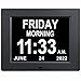 Perfect for Seniors - This unique Digital Calendar Clock clearly spells out TIME, TIME PERIOD (MORNING, AFTERNOON, EVENING, NIGHT, BEFORE DAWN), full DAY of the WEEK, DATE, in large, bold letters on 8-inch large screen with no confusing abbreviations. Day Clock is pretty easy to read for seniors.