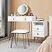 👑【Durable Material & Grace Vanity Bench】The vanity desk top is made from advanced particle board, good load bearing capacity, pollution and aging resistance. With a timeless color, thickness mirror frame and extra soft cushioned stool, this dressing table gives a feeling of calm and sophistication, perfect for home, work, hair salon and studio makeup.