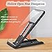 【Multi-Angle Adjustment】 A variety of angles can be adjusted, always find the right angle. When adjusting the angle, hold and lift the support bar with two fingers for easy adjustment. Whether you are working, cooking or studying, this adjustable phone stand can free your hands, adjust your posture and reduce the pressure on your neck and back.